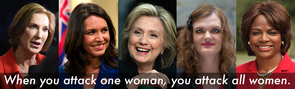 We must erase the pervasiveness of sexism against all women candidates — irrespective of political party or level of office — across all media platforms in order to position women to achieve equality in public office. We will not stand by as pundits, radio hosts, bloggers, and journalists damage women's political futures with misogynistic remarks. When you attack one woman, you attack all women.